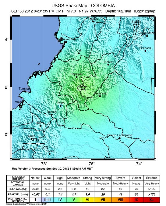 According to the El Pais, Cali’s major newspaper, the ground shook for 50 seconds and was felt in Cali and a number of regions in Colombia’s southwest.