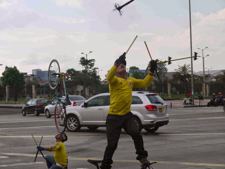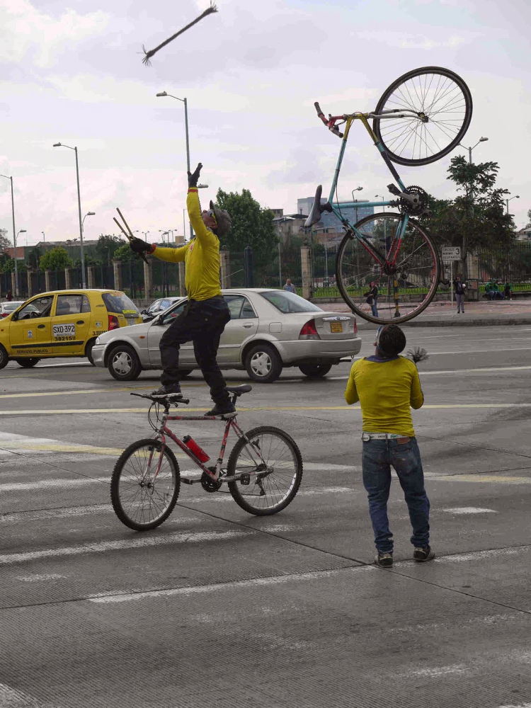 TODAY COLOMBIA (Mike’s Bogota Blog) You’ll feel a little less bored these days while stuck in the usual traffic jam on Calle 26, thanks to these two pairs of street performers working consecutive stoplights.
