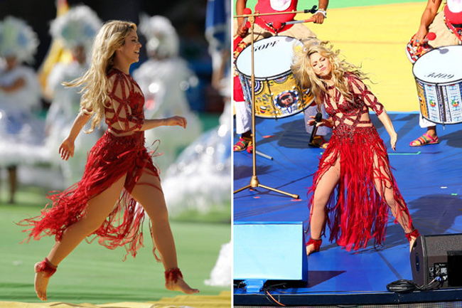 Shakira, 37, performed with musician Carlinhos Brown in the centre circle of Rio de Janeiro’s famous Maracana stadium.