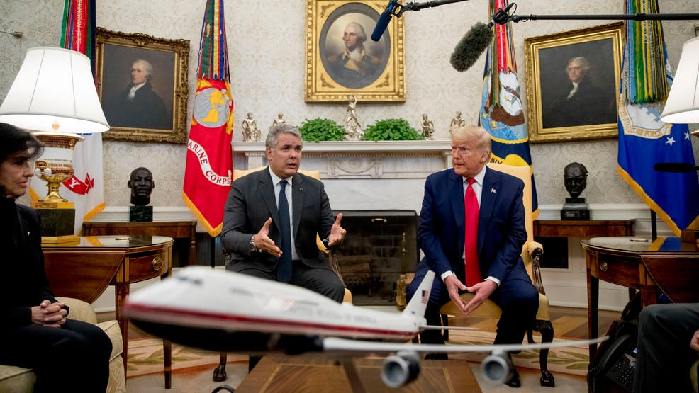 Colombian President Iván Duque met with U.S. president Trump n the Oval Office at the White House on Monday. In brief remarks, the two leaders reaffirmed the relationship between the countries and talked about humanitarian issues in Venezuela.