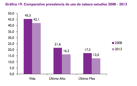 Tobacco consumption is on the downturn in Colombia, thanks to fewer new smokers each year, the study concluded. However, the study still estimates that around 3 million people still consume cigarettes.