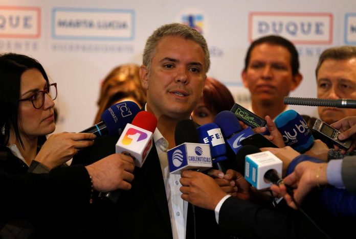 BOGOTA (Reuters) – Right-wing candidate Ivan Duque kept his lead over rivals ahead of Colombia’s May 27 presidential election, with 35 percent of voters saying they planned to back him, a survey by YanHaas showed on Thursday.