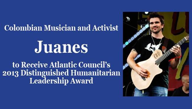 Today, Wednesday, May 1, the Atlantic Council will honour Colombian musician and social activist Juanes with its 2013 Distinguished Humanitarian Award.