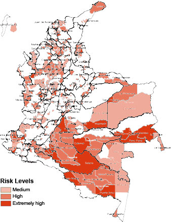 The risks for violence are particularly high along the Pacific coast, in the north of the Antioquia department, in the southern jungle states of Colombia, and along the Venezuelan coast where rebel groups and drug trafficking organizations have strong influence.