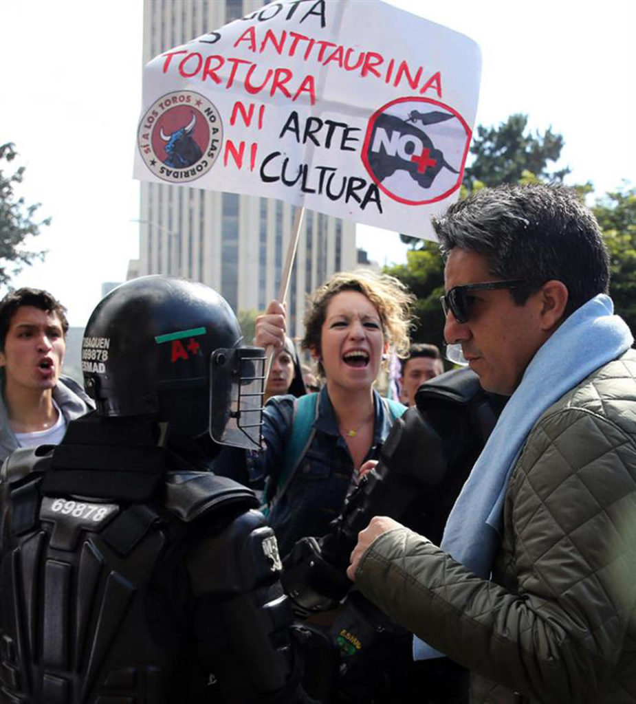 TODAY COLOMBIA, Bogotá – Hundreds of protesters clashed with police forces and harassed spectators that were making their way to a bullring in Santamaría Plaza in the Colombian capital Bogota on Sunday, as bullfighting (corrida de toros) returned to the city for the first time in four years.