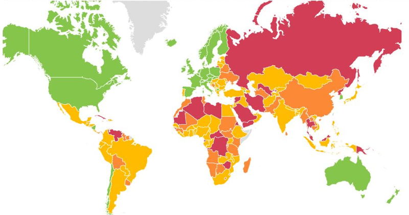 The map indicates the countries that fully comply (tier 1 green) with the Trafficking Victims Protection Act’s (TVPA) standards; tier 2 (yellow) that do not fully comply with the TVPA’s standards, but are making significant efforts to bring themselves into compliance; WL (watchlist in orange) where number of victims is very significant. There is no evidence that countries are making significant efforts to improve based on their commitments over the next year; and, tier 3 (purple) countries that do not fully comply with the minimum standards and are not making significant efforts to do so.