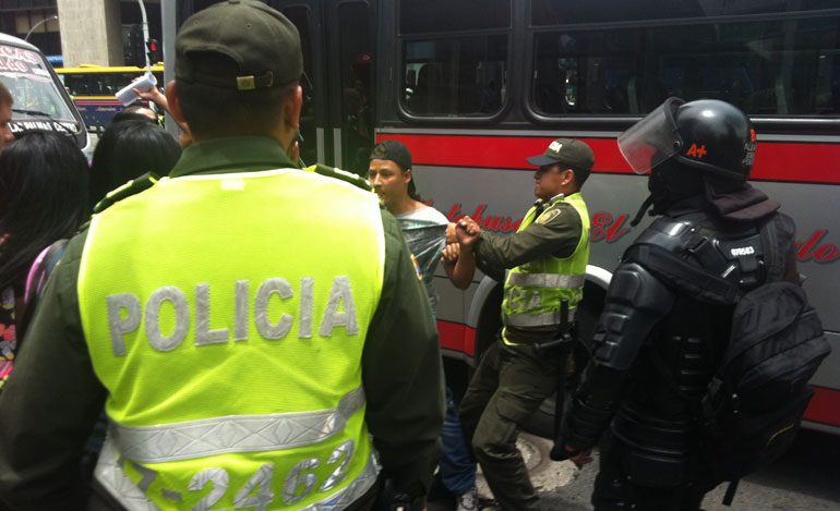 The protesters told Colombia Reports that police had closed their stands and taken their goods of street vendors who were unable to show proper permits.