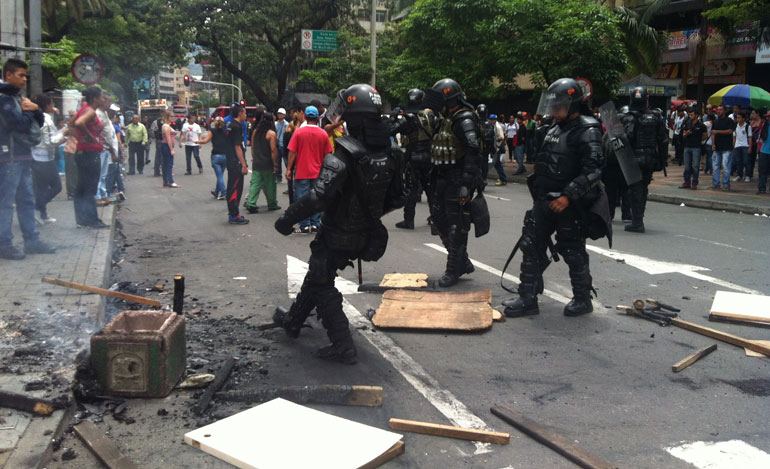 Protesters seeking a dialogue with Colombian President Juan Manuel Santos clashed with National Police forces Monday, in demonstrations said to paralyze parts of the state.